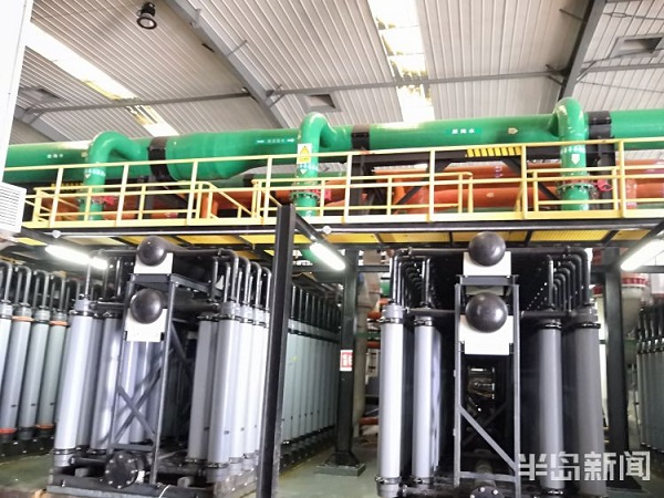借助靠近胶州湾的区位优势,百发海水淡化公司从胶州湾取得优质底层海水,引入烟墩山西侧的海水湖里暂存。随后,海水湖里的海水经取水泵站加压,通过埋藏在地下的1.3公里长玻璃钢管道输送到厂区,在超滤车间进行预处理。“海水透过超滤膜,可以去除95%以上的悬浮物,变成只含有盐分的洁净海水。”李珂介绍道。