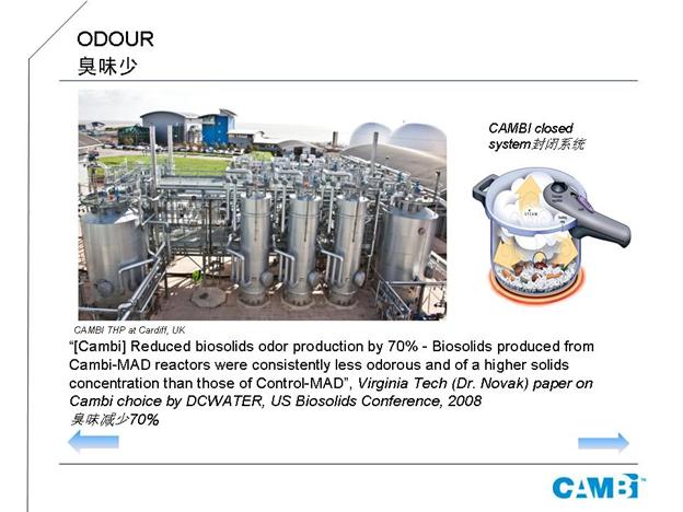 坎比工艺设计简洁、布局紧凑,能有效利用现有的污泥处理设备,并能增强其处理能力、节省污泥处理的投资,所以既可用于新建污泥处理厂,更适于现存污泥处理工艺的改造。